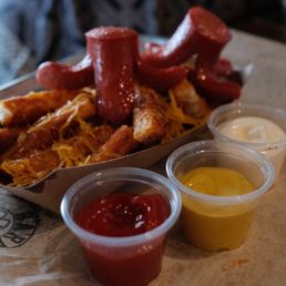 Hello, my friend! The ambiance of the place is Mexican border style. Loud music, but in moderation. Comfortable bar counter with a good assortment of drinks to go with the hot dog. The staff is polite and detailed about the hot dogs. And so the hot dogs themselves. I sampled two hot dogs el Capone and Aleman. One asked for a bacon wrap, which unfortunately they forgot to do for this minus a star. I definitely recommend the Aleman for its interesting combination of cumin and sauerkraut. El Capone is usual good hot dog without frills. Children's menu promised three mini hot dogs in the end it's just fries and three halves of sausage, not mini hot dogs. Another minus star? I will definitely be back here again to try other items on the menu. Recommended! See you in the next review)